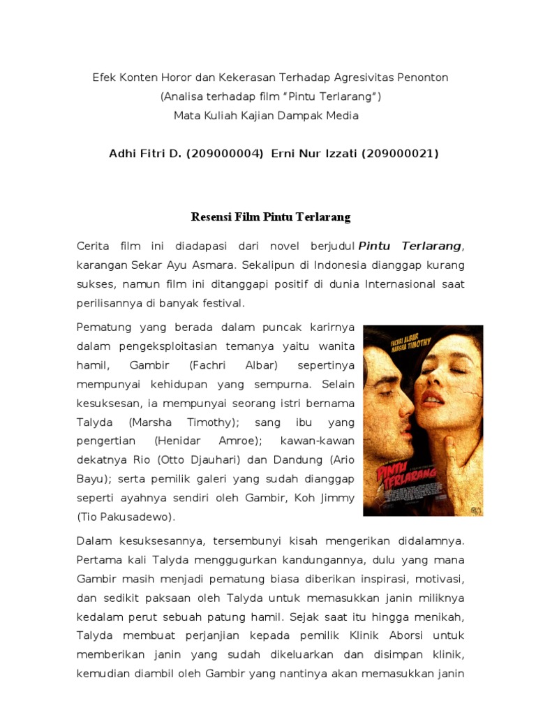 Teori Horor Dan Kekerasan Pintu Terlarang