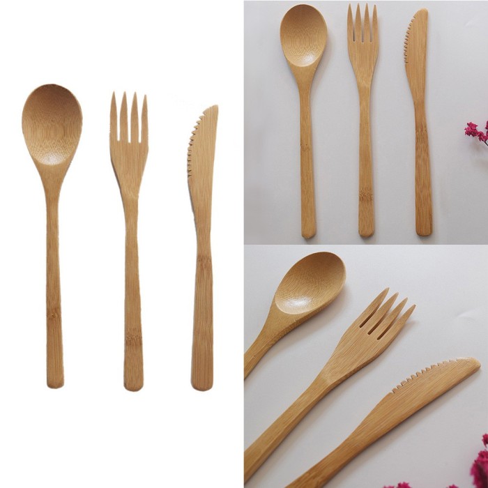 Bamboo Cutlery Set Sendok Garpu Pisau Alat Makan Kayu Bambu Dapur Cafe Bamboo Set