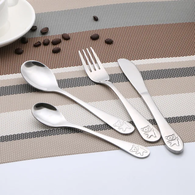 Us 2 93 35 Off Anak Anak Sendok Garpu Set Stainless Steel Anak Pisau Garpu Makanan Peralatan Makan 4 Pcs Kartun Beruang Makan Set Di Set Makan Dari