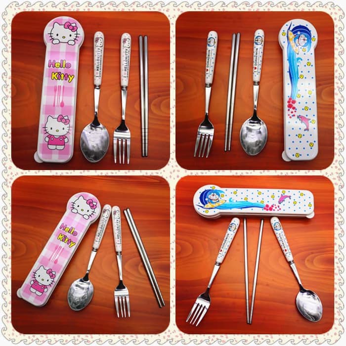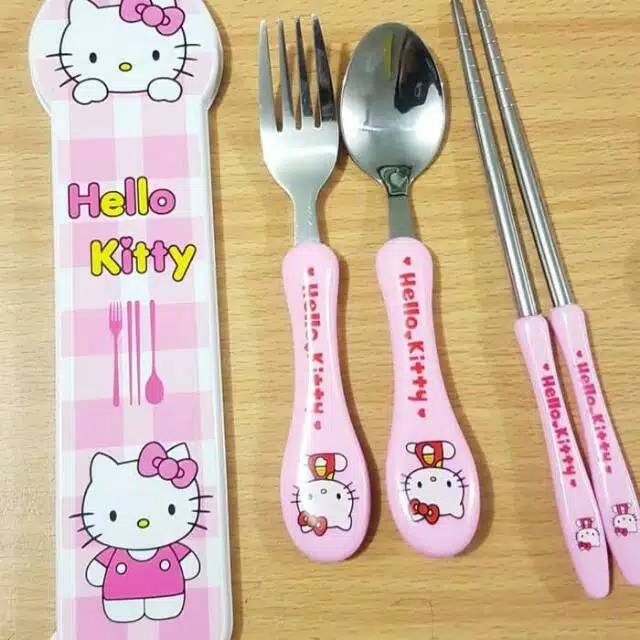 Sendok Set Sendok Makan Anak Set 3in1 Karakter Sendok Garpu Sumpit Karakter Sendok Set Hello Kitty
