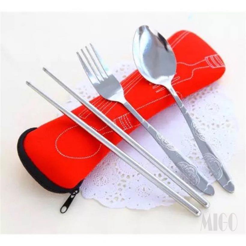 4pcs Set Peralatan Makan Sendok Garpu Sumpit Bahan Besi Dapat Dipakai Ulang 304