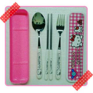 Sendok Garpu Sumpit Hello Kitty Dilengkapi Case Kitchen