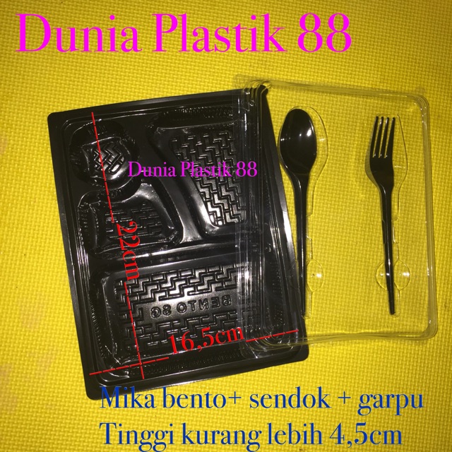 Isi50pc Mika Bento Sendok Garpu Kemasan Mika Box Bekal Kotak Bekal Plastik Tempat Makan Tray Nasi