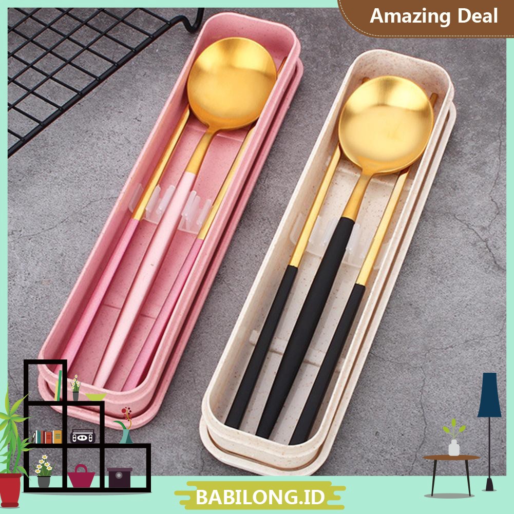 Bbl 2pcs Set Sendok Garpu Sumpit Bahan Stainless Steel Dengan Tas Jaring