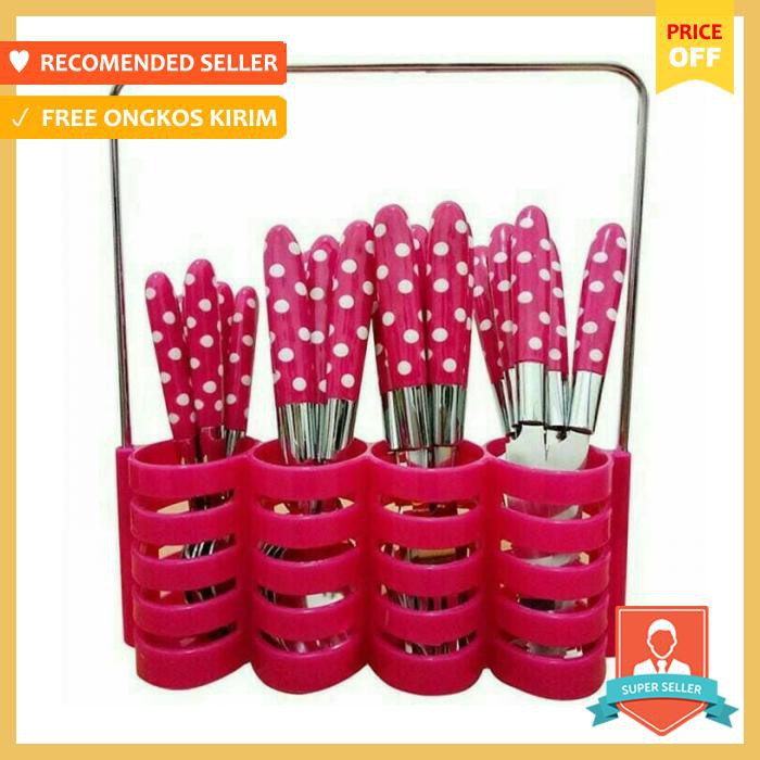 Bisa Bayar Di Tempat Sendok Polkadot Set 24 Pcs Garpu Polkadot Pisau Polkadot Stainless Steel