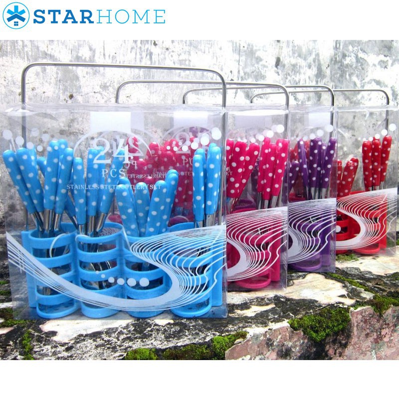 Produk Terlaris Starhome Sendok Polkadot Set Stainless Steel Isi 24 Pcs Sendok Garpu Pisau Aneka