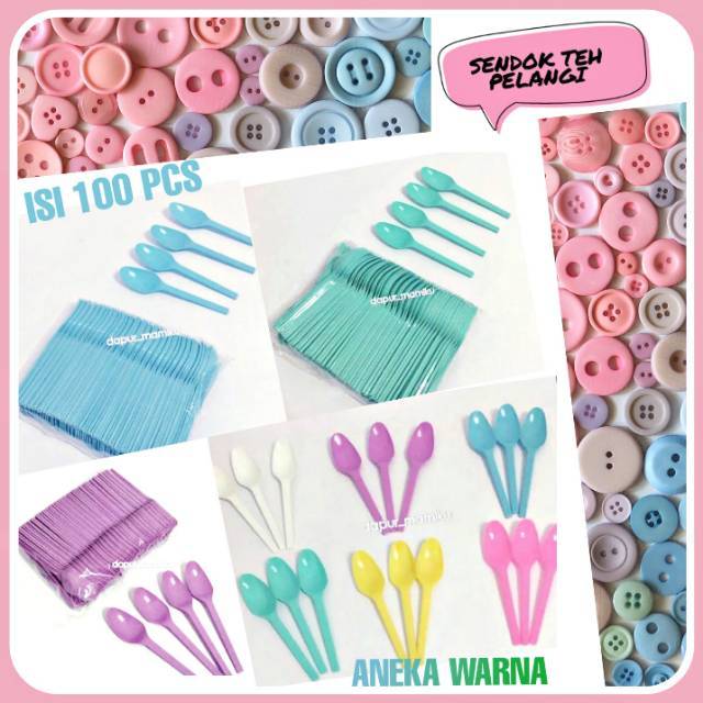 Dapurmami 100 Pcs Sendok Teh Pelangi Sendok Ice Cream Warna Warni